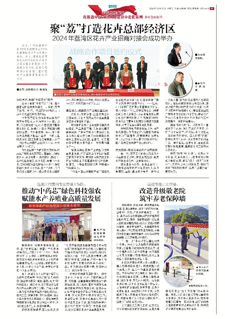 新快報(bào)訊 花地接花津,四時(shí)皆似春。12月6日,荔灣區(qū)在1906科技園舉辦2024年荔灣區(qū)花卉產(chǎn)業(yè)招商對接會。會上,荔灣區(qū)招商和農(nóng)業(yè)部門與相關(guān)花卉協(xié)會及頭部企業(yè)簽訂11份戰(zhàn)略合作協(xié)議,荔灣與花都兩區(qū)農(nóng)業(yè)部門簽訂花卉產(chǎn)業(yè)高質(zhì)量發(fā)展合作協(xié)議。